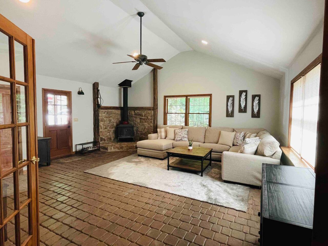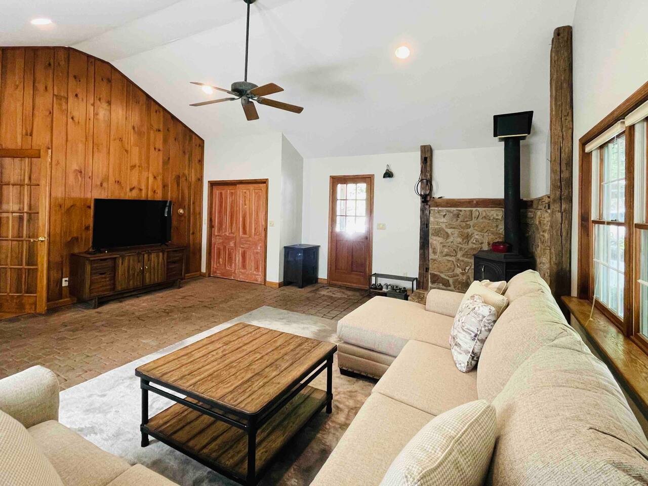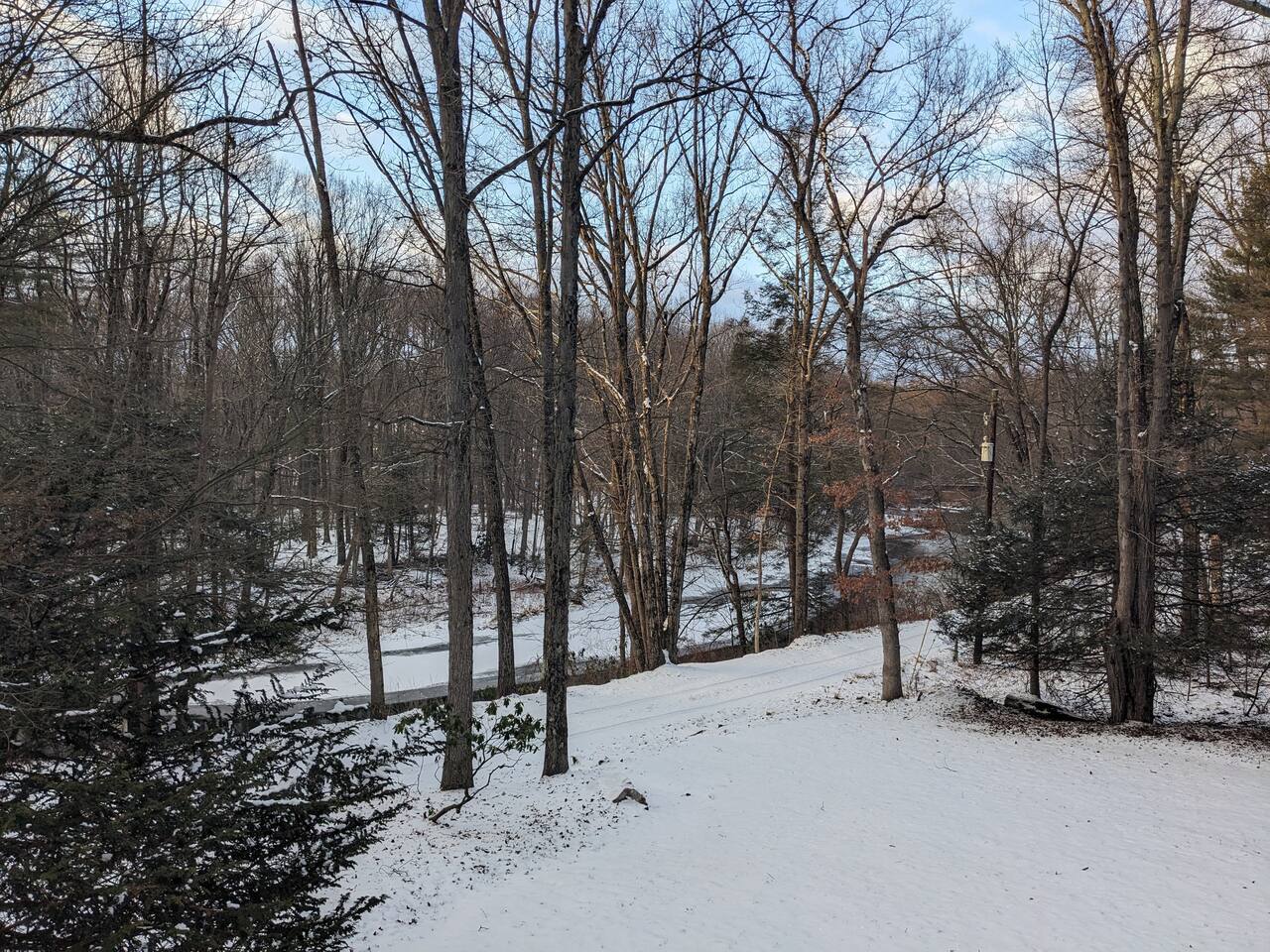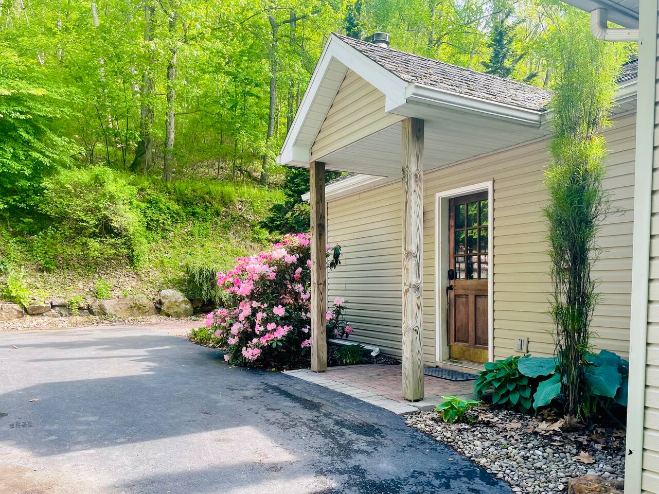 The property is situated on a private gravel lane, about half a mile from the main road. You'll drive by several other private residences as you arrive. Hiking and biking trails are accessible within a few miles of Hidden River Lodge. The Little Schuylkill River can be accessed directly from the property. A 15 minute drive (7.5 miles) into Hamburg will take you to Cabela’s, Lowe's, Aldi, Starbucks, Wawa, Walmart, and a wide variety of dining options.