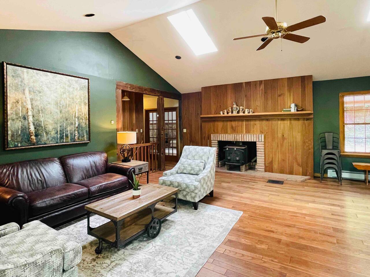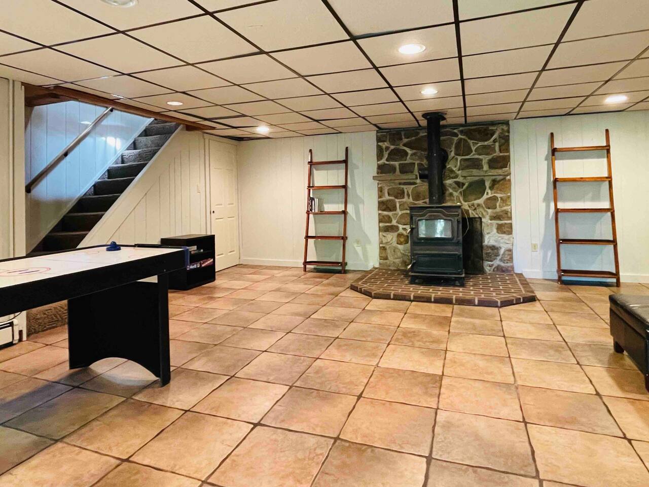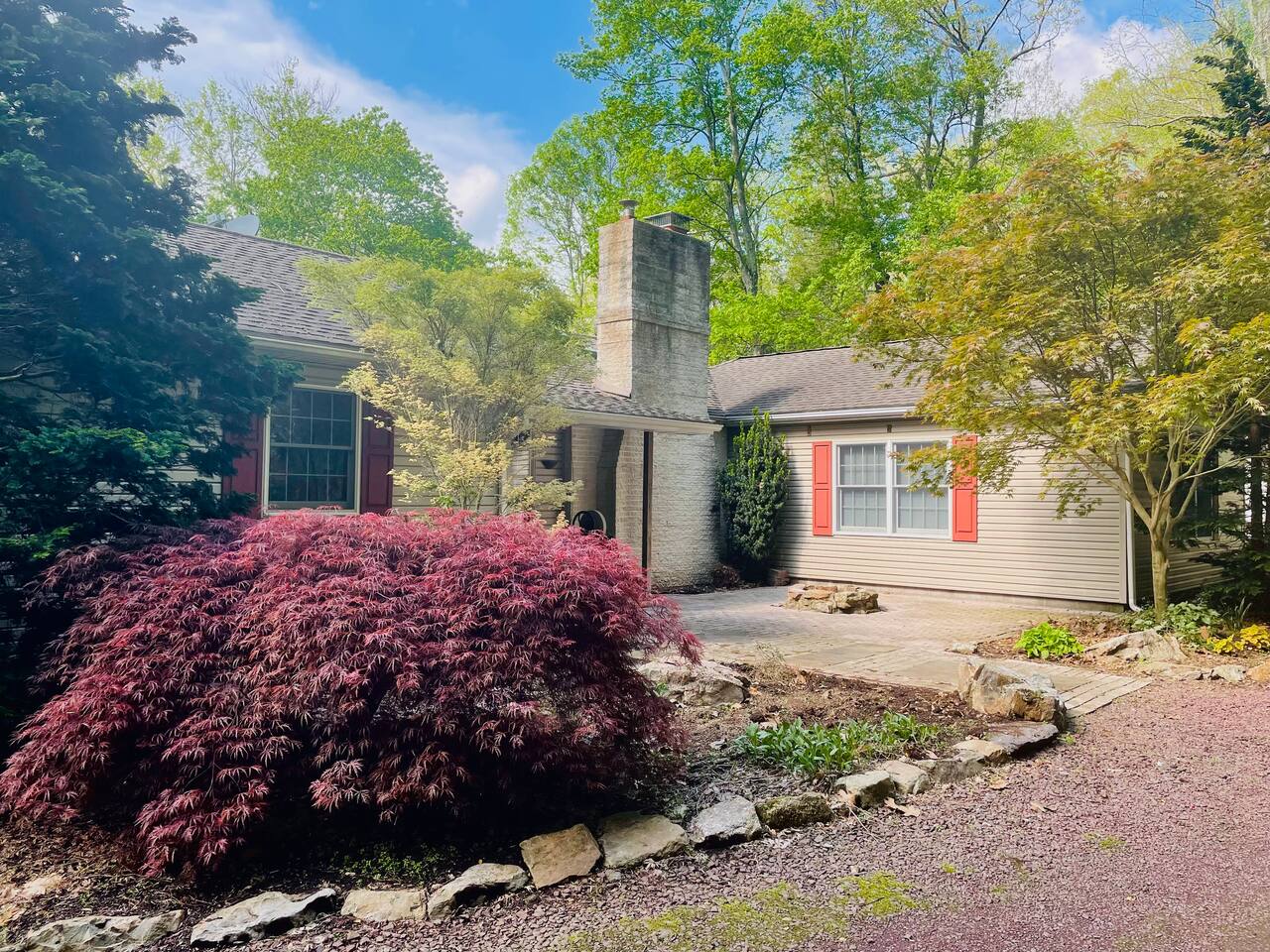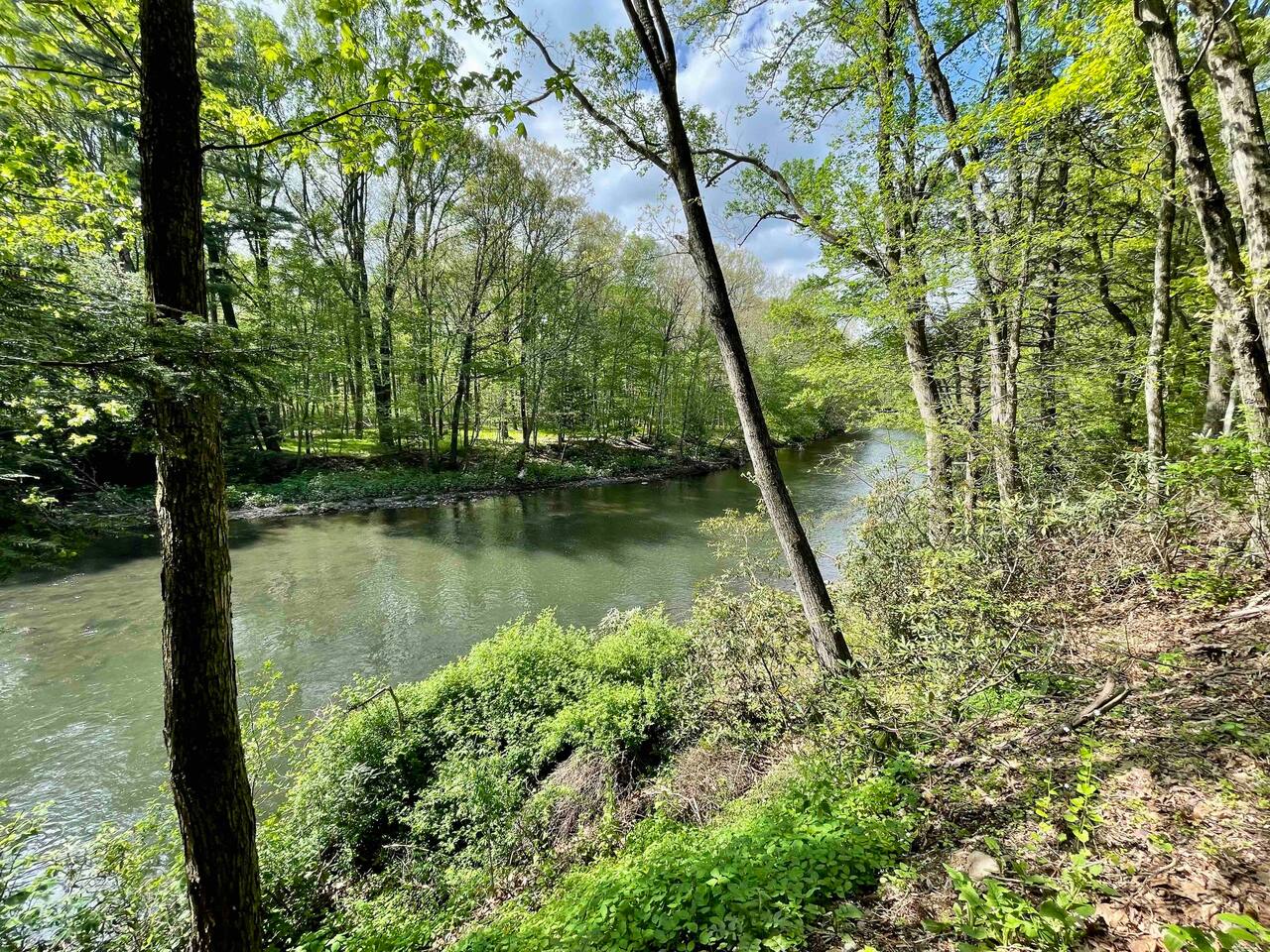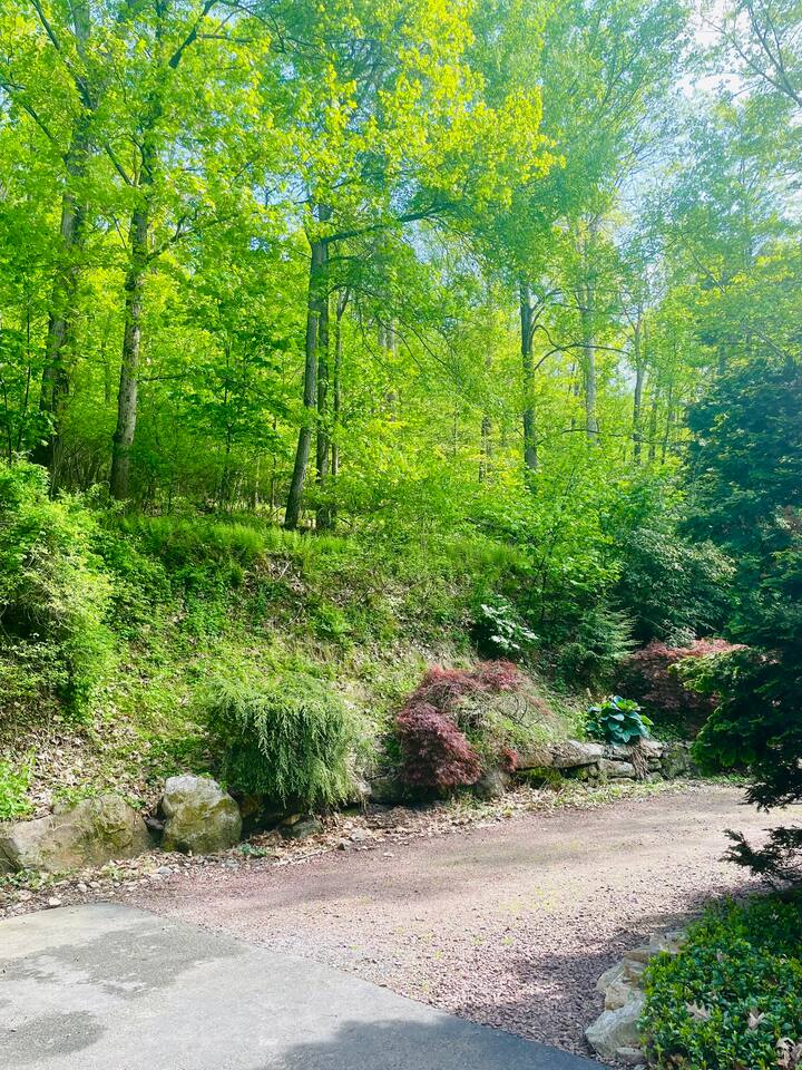 Hidden River Lodge is tucked between Hawk Mountain and the Little Schuylkill River. The property is serene and private, surrounded by woods on all sides. The spacious living room and dining room have vaulted ceilings and opens to the kitchen. The large dining room table easily seats up to 10 people. Sliding doors off of the living room open to a deck with a grill and spectacular forest and river views. The master bedroom is off of the kitchen. It offers a queen bed and has a private bathroom with a large walk-in shower. The bunk room down the hall from the living room has four twin beds and one full bed. It’s the perfect space for kids with toys, games, and books. A full bathroom is next to the bunk room. The “stone room” is through French doors off of the living room. It has vaulted ceilings and has a large, plush sectional that has a pull-out bed as a sleeping option. The room also has a television and is a great space for watching a movie or spending time with family and friends. Downstairs, a third living area doubles as a game room. Doors open onto a patio with access to the front yard. A short walk brings you down to the river’s edge for fishing, kayaking, and swimming. Off of the downstairs living room is a third bedroom. This cozy room has a full bathroom, queen-sized bed, and a workspace. The walk-in closet is large enough for a pack-n-play. The laundry room is also downstairs, which you are welcome to use. Hawk Mountain, a bird sanctuary, is located directly behind Hidden River Lodge. Hawk Mountain offers a variety of very well maintained hiking trails and is a popular location for bird watchers. Other hiking trails in the area are accessible via the main road, including the famous Appalachian Trail. You can find trail maps online. The house is equipped with WiFi. Please note that due to the remoteness of the property, the connection can be limited. Be advised to consider this if planning to work and/or stream content during your stay. Otherwise, embrace the opportunity to unplug and enjoy nature and any fellow guests! Hidden River Lodge is a quiet and peaceful retreat, it's the perfect getaway!